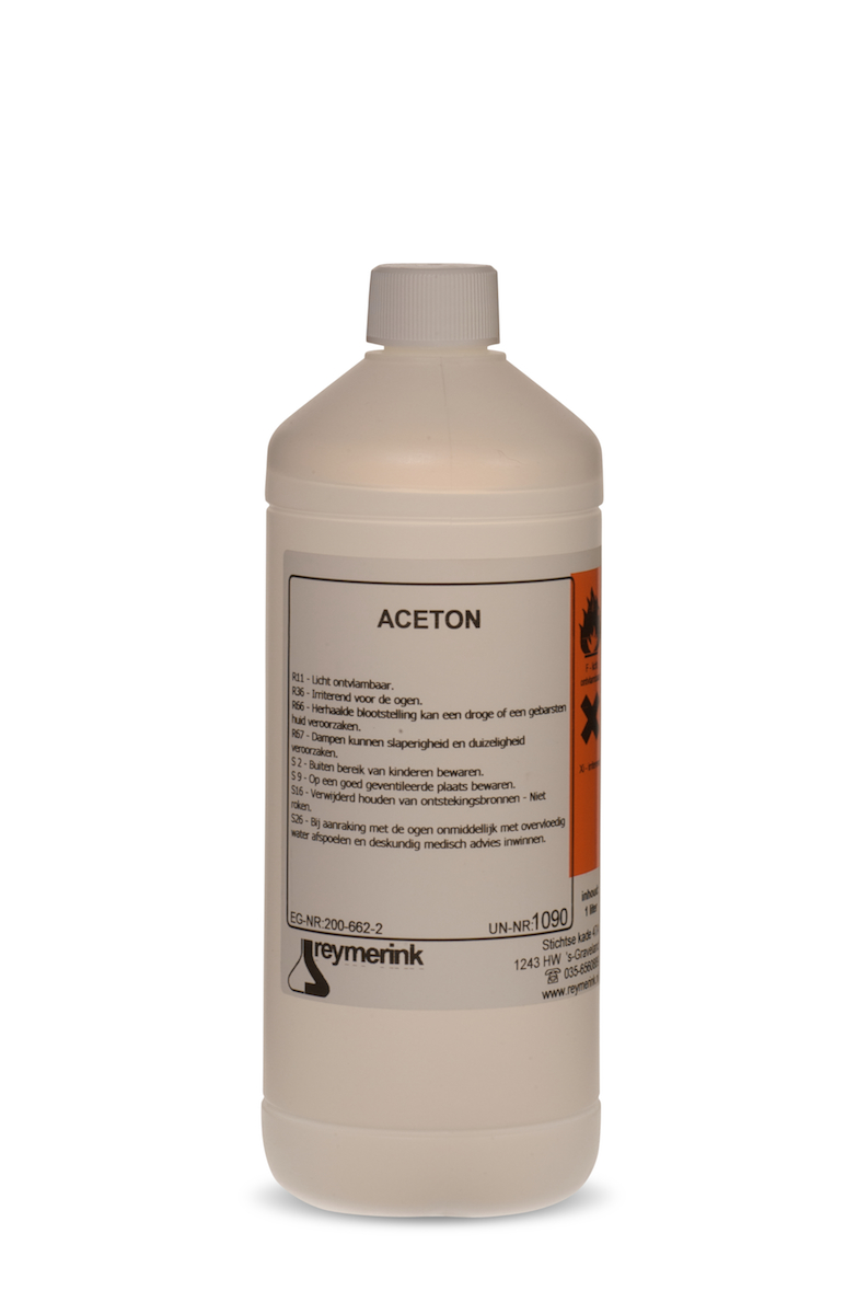 Aceton. Voor het verwijderen van nagellak. Verkrijgbaar in 100 ml., 1000 ml. 3000 ml en 5000 ml.