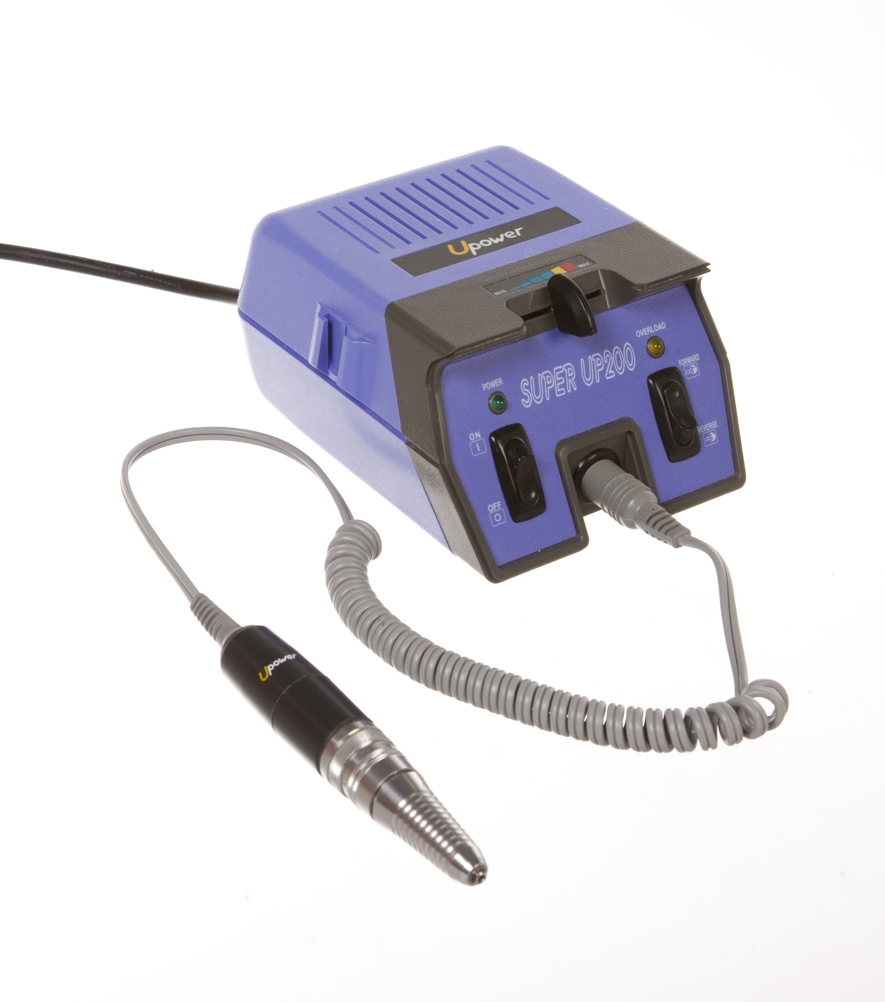 Deze professionele elektrische freesmachine is absoluut van wereldklasse. De Super UPower-200 bestaat uit een handstuk en een transformator (regelunit). De machine is compact, licht van gewicht en neemt bijna geen plaats in op je werktafel. De snelheid kun je traploos regelen tot 25.000 toeren per minuut. De Super UPower-200 heeft een klein en licht handstuk van roestvrijstaal en is geluidloos en trilvrij. De hulpstukken kun je gemakkelijk verwisselen met een eenvoudige draaibeweging het zgn. 'Twist of the wrist'- systeem. Deze machine is te gebruiken door rechts- en linkshandigen, heeft één jaar garantie en alle onderdelen zijn los te verkrijgen. De UPower-200 wordt geleverd met 100 schuurrolletjes en één mandril t.w.v. ¬ 25,50. Er is ook een voordelige combiset met daarin de volgende werkmaterialen: Cleaner bit, Diamond wheel bit en de Space bit. Service en onderhoud. Wist je dat we ook al het onderhoud verzorgen van de freesmachines die we verkopen? Zo blijft je freesmachine altijd in topconditie en heb je er nog langer plezier van. Als extra service krijg je nu bij aanschaf van een nieuwe freesmachine de eerste onderhoudsbeurt geheel gratis als je je freesmachine binnen een jaar een servicebeurt laat geven.